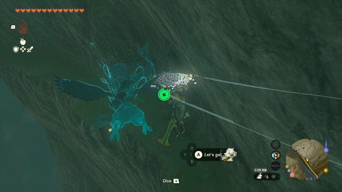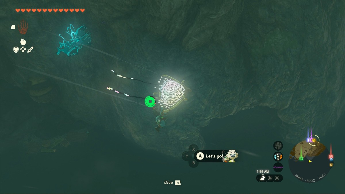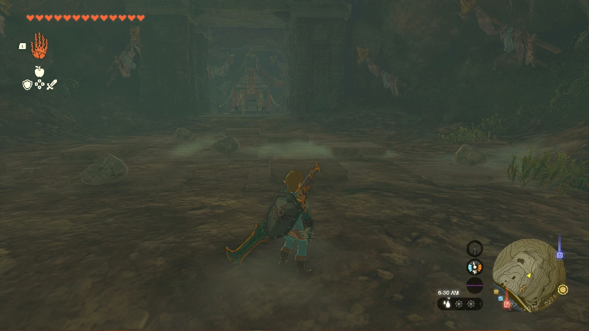 А как же войти? Подумайте, как бы вы привлекли мое внимание или даже вашего коня. Верно, просто свистните, и дверь распахнется. Присоедините один из своих вентиляторов Zonai или сделайте это по-старинке, проплывая вперед в пещеру. Если у вас есть доспехи Зоры, это сильно облегчит вам задачу.